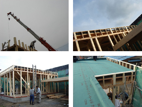 前日に床合板まで完了しておいての本日の作業(今回はネダレス工法です)