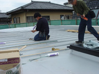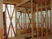 現場は筋交いが完了 屋根工事進行中