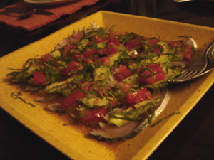 しめ鯖とアボカドとトマトのカルパッチョ。絶品。