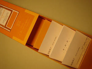 先日差し入れに頂いたフィナンシェ 「現場の皆さんとどうぞ」と言われたのに。 ひとりで食べ尽くしてしまいました・・・ あーあ。。。と空き箱ながめてピンときた。 名刺入れにぴったりでした