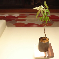 ゴールデンウィーク4連休。 毎日毎日、ほんとうによく歩き廻った… 普段よりも、睡眠時間がとれなかった… そして、あっ、という間に終わるのね… 何をしていたかは追々書くことにして… 1日目、食事に向かった自由が丘のお店 順番待ちのその間に立ち寄った雑貨やで “ヤマモミジ”に釘付けになり 固まってますよ、と店員さんに笑われた 用途不明のまま 作成した しましま高台に のせてみた