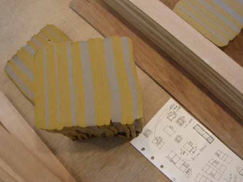 この間のをカットするとこんな断面です わかりづらいですが3色のシマシマです 構想は、一応スケッチメモしていますが 先生に作り方を相談しているうちに、変更 またもやあまりの部分で副産物を先に製作 さて、これはなんでしょう 陶芸も復活の兆しをみせたところで 夏休みに入ってしまいました。。。 あー、もうそんな季節。。。確かに暑い。。。 完成は、、、いつ?