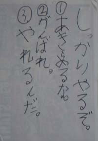 急遽本日へ予定変更して頂いたお宅へ プレゼンに伺いました(スミマセンデシタ…) すると 前回はなかった貼紙がリビング中央に。 小学2年生の息子君 私が前回伺ってからのこのひと月に 彼に、何か、が起ったらしい この、畳み掛け好きです。 私も、しっかりやります。