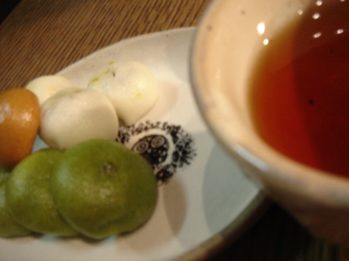 夕方、携帯にメール。お隣さんから。 「饅頭食べに来ない♪」 全色食べていいの〜?ということで まずは茶饅。もちもちでおいしいー で、次に口にしたのは 、、、茶饅。 あ、間違いた。 ということで、饅頭を計4つ食べました (茶→茶→緑→白。ね) さ、休憩もしたことだし 仕方ない。もうひとがんばりしますかね