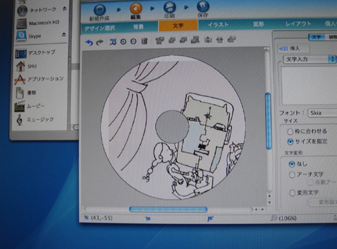 仕事でPCを使うようになってから もう随分経つと思うけど… その機能を全然使いこなしていないな って思うんです 必要に迫られなければ特に問題ないしね… そんなこの間、事務所紹介ムービーを というお話を頂いて 初チャレンジしてみたんですi-Movie ぽちっと押すだけでいろいろな編集ができて なんか凄く楽しいの で、今日はDVDレーベルのデザインをば これがまた楽しい 趣味がいろいろ増えそうです