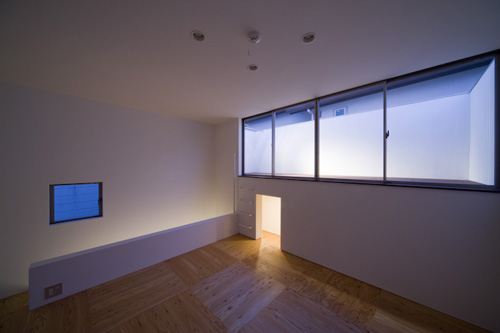 リビング&テラスの夜景です。 大開口は欲しいけど、物を配する為の壁も欲しい。 の要望により半層上がったテラス。 その下に生まれた空間は穴蔵的寝室に。 (撮影:上田宏) 竣工写真UPしました。 HPの方へはまだ反映されていませんので ひとまずこちらでご覧頂ければ、と。
