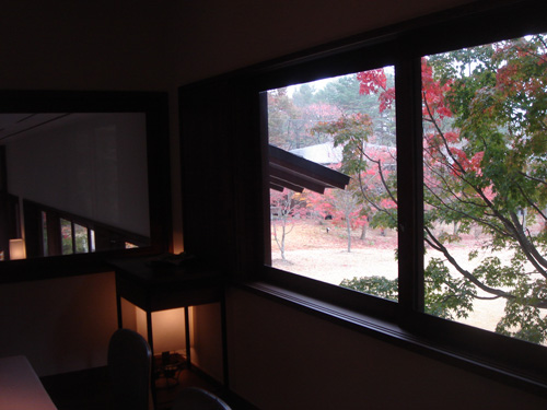 中2階の個室(元:寝室)から庭を見ます。 左手の開口部はリビングダイニングとつながっていて この開口がすごく効いている。(引き戸になっています) この部屋に居るときの、1階の気配の伝わる加減が好きです。 この部屋の大きさとのバランスや 高さ関係のバランスなのだと思います。 何気に一番の感動ポイントだったりします。 その開口部から私たちの席を見下ろすとこんな感じ。 (未だに席につていません(笑))